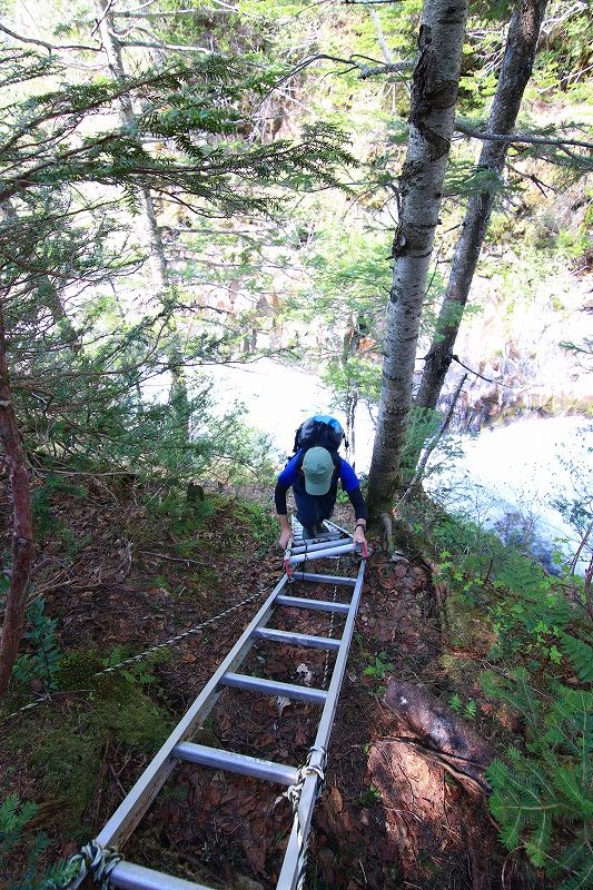 最後の渡渉はできず、ササ壁をよじ登って登山道へ。