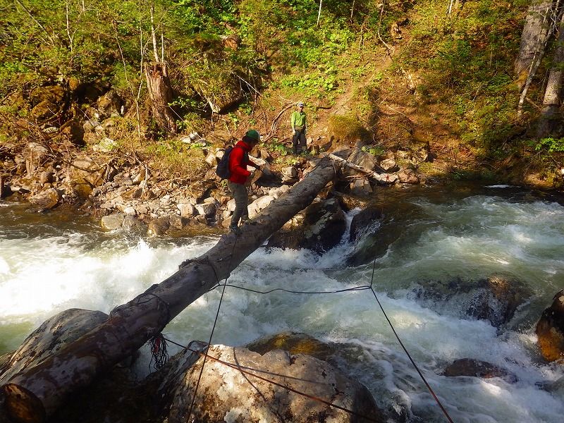 それでも何とか渡渉し、距離を測り、資材の確認です。